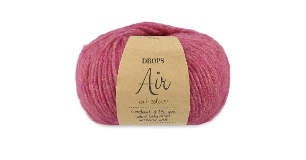 Door het lichte karakter is Drops Air wol perfect voor zowel cozy oversized truien als fijne babyvestjes, zachte sjaals en dekentjes. Deze Uni Colour (effen) kleuren hebben een typische ‘zachte gloed’ van alpaca.