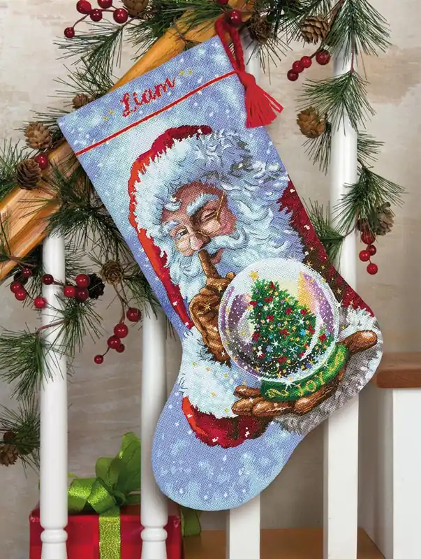 Dimensions Santa’s Snow Globe Stocking borduren (pakket) Betaalbaar