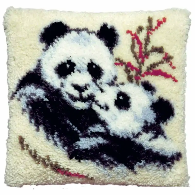 Een knooppakket van een panda met jong kussen op voorbedrukt stramien om gemakkelijk te knopen!