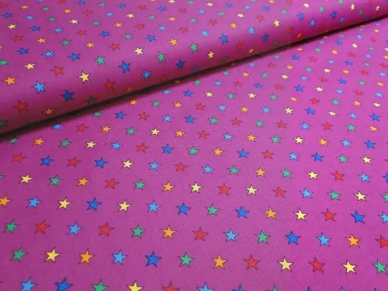 Tijdelijk Beschikbaar Katoen stof fuchsia met sterretjes print, B1098