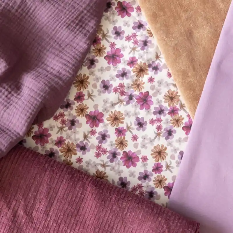 Uitverkoop Katoen bloemen perzik\\/violet