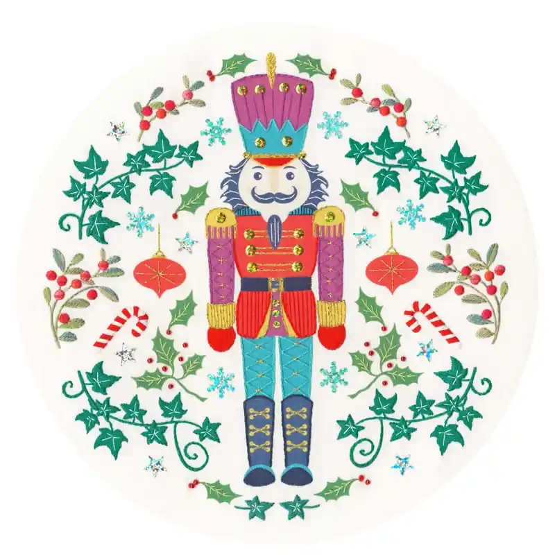 Dit feestelijke borduurpakket is bewerkt op een prachtig in kleur bedrukt calico (katoen) met voorgesorteerde borduurgarens. Het ontwerp maakt gebruik van een verscheidenheid aan creatieve steken, die allemaal duidelijk in de instructies(Engels) worden uitgelegd. Het pakket bevat ook metallic en multidraden, naalden, kralen en pailletten, een duidelijk stekendiagram en instructies.