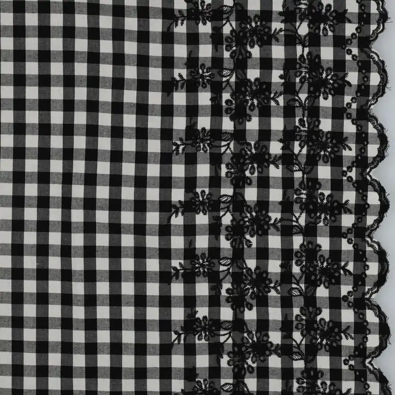 Weekendaanbieding Katoenen ruit\\/geborduurde bloemen rand