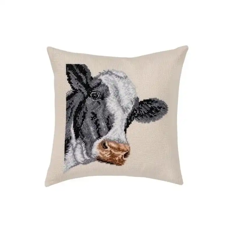 Permin kruissteekkussen voor het borduren van deze koe.